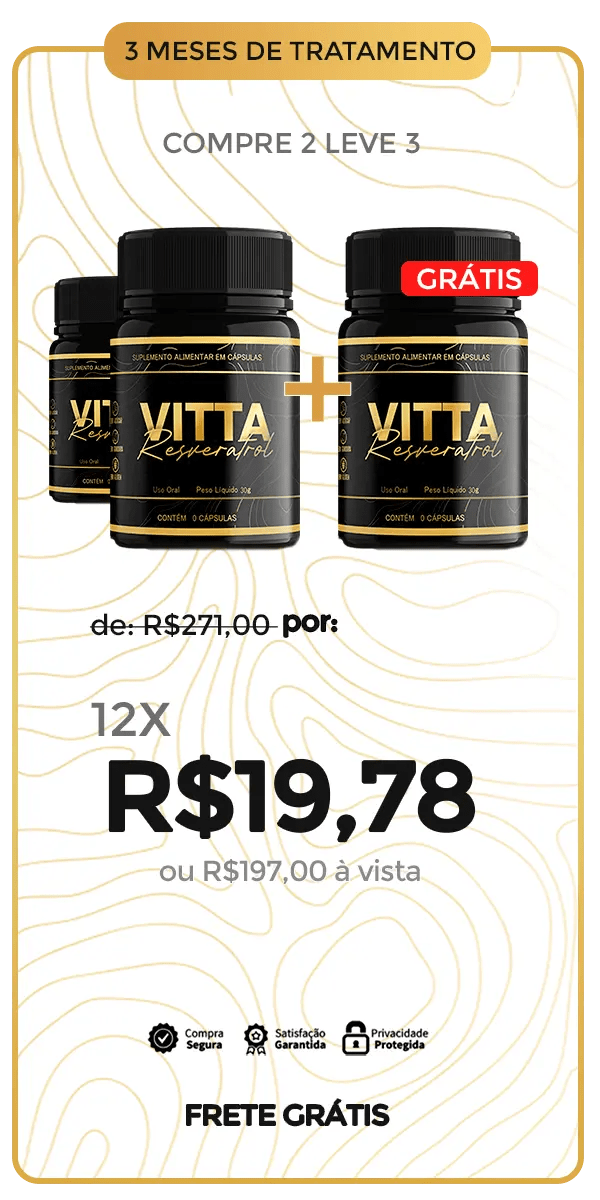 Por se tratar de um Suplemento alimentar, Vitta Resveratrol é um produto dispensado da obrigatoriedade de registro conforme RDC 27/2010 e 240/2018 (ANVISA), porém, devidamente autorizado para comercialização e sem nenhuma restrição pelo órgão.